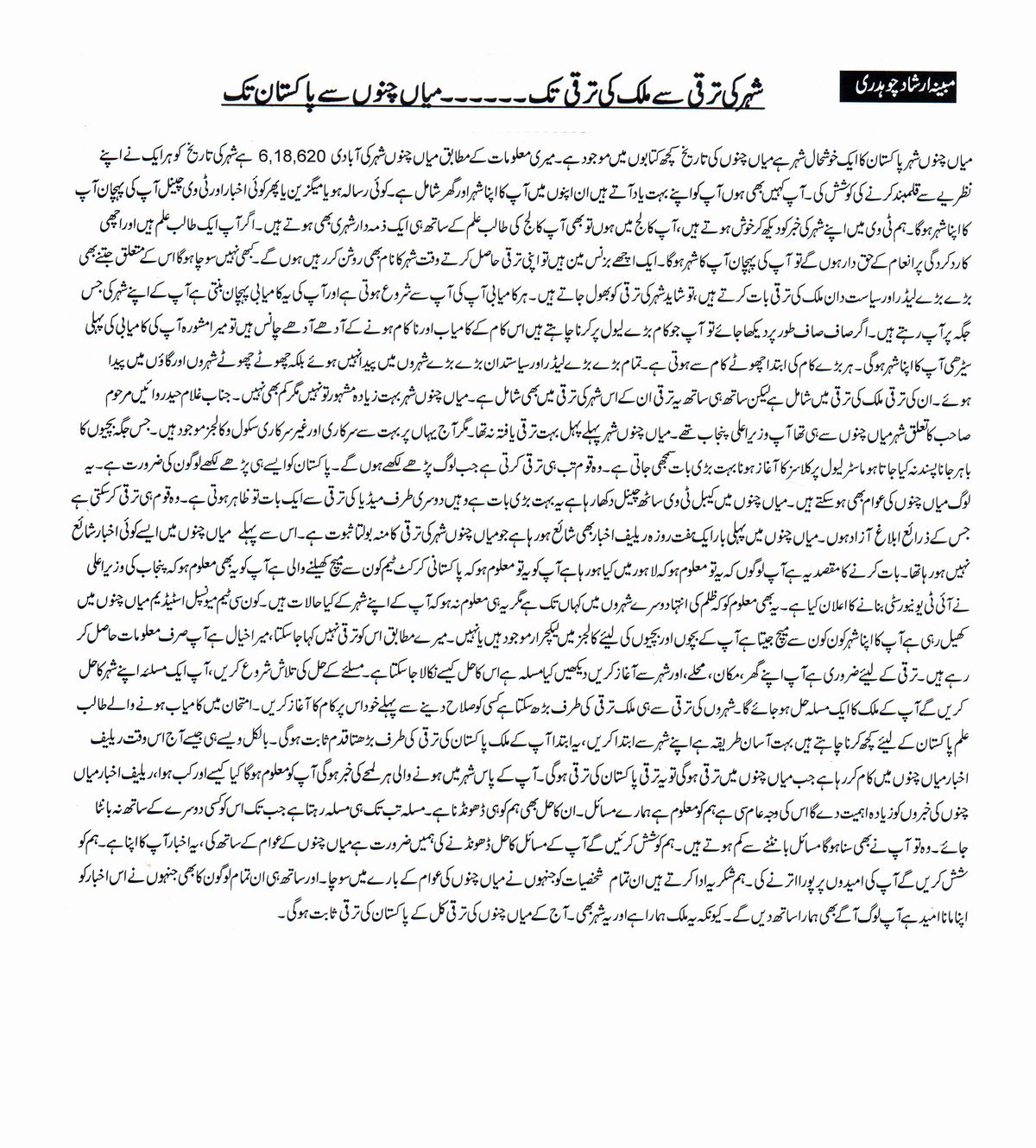 Shehar ki Taraki sy Mulk ka Taraki tak
